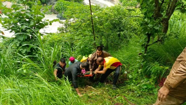 बागेश्वर : जनपद बागेश्वर के फ्रॉग पॉइंट के पास दो व्यक्ति खाई में गिरे , SDRF ने किया सकुशल रेस्क्यू । आज 10 जुलाई 2023 को चौकी खेरना द्वारा SDRF टीम को सूचित किया गया की फ्रॉग पॉइंट के पास दो व्यक्ति खाई में गिर गये है, जिनके रेस्क्यू के लिये SDRF टीम की आवश्यकता है। उक्त सुचना पर SDRF टीम उप निरीक्षक राजेश जोशी के हमराह, मय रेस्क्यू उपकरणों के तत्काल घटनास्थल के लिए रवाना हुई। SDRF टीम द्वारा घटनास्थल पर पहुँचकर त्वरित कार्यवाही करते हुए रोप के माध्यम से खाई में उतरकर दोनों घायल व्यक्तियों तक पहुँच बनायी व रोप- स्ट्रेचर के माध्यम से वेकल्पिक मार्ग से होते हुऐ घायलों को मुख्य मार्ग तक लाया गया और एम्बुलेंस के द्वारा अस्पताल भिजवाया गया। SDRF टीम को घटनास्थल पर स्थानीय लोगों द्वारा बताया गया की उक्त दोनों व्यक्ति, गरम पानी से होते हुऐ बद्रीनाथ दर्शन के लिए जा रहे थे।