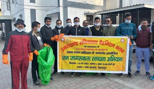 देहरादून : सचिवालय बैडमिण्टन क्लब के तत्वाधान में नगर निगम, देहरादून के सहयोग से शनिवार को स्वच्छ भारत अभियान के अन्तर्गत सफाई अभियान चलाया गया। क्लब के सदस्यों द्वारा बहुद्देशीय क्रीड़ा भवन, देहरादून के परिसर से प्रारम्भ करते हुए परेड ग्राउण्ड के चारों ओर सफाई की गयी। इस अभियान में नगर निगम, देहरादून द्वारा भी सहयोग प्रदान किया गया। क्लब के सदस्यों एवं नगर निगम, देहरादून के कर्मियों द्वारा परेड ग्राउण्ड के चारों ओर बिखरी पॉलिथीन की थैलियाँ, प्लास्टिक की बोतलें, चिप्स इत्यादि के पैकेट एकत्रित किये गये। परेड ग्राउण्ड के चारों ओर अत्यधिक मात्रा में कूड़ा बिखरा हुआ रहता है। शहर के मध्य स्थित होने तथा खेल के मैदान के कारण यहाँ पर अत्यधिक मात्रा में लोगों की आवाजाही रहती है। लोग अपने साथ लाई गयी खाद्य सामग्री के सेवन के उपरांत थैलियाँ, प्लास्टिक की बोतल इत्यादि इधर-उधर फेंक देते हैं। नगर निगम, देहरादून की ओर क्लब को दस्ताने, कूड़ा निस्तारण थैलियाँ तथा इकट्ठा किये गये कूडे़ को डपिंग ग्राउण्ड तक ले जाने के लिए वाहन भी प्रदान किया गया। इस अभियान के दौरान 02 ट्राली कूड़ा एकत्र किया गया।
