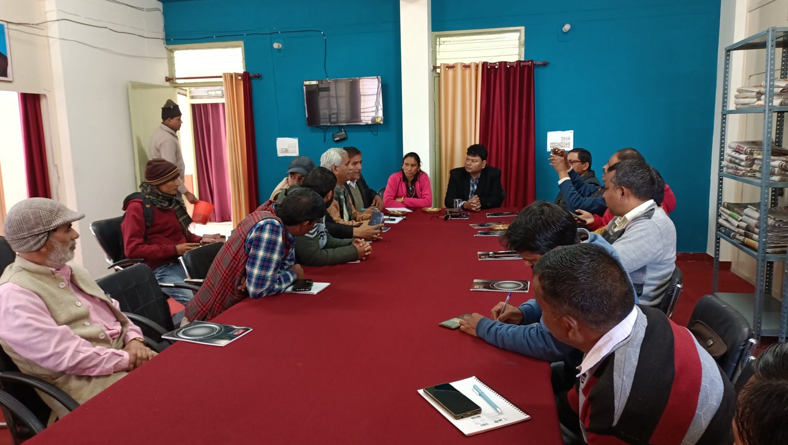 गोष्ठी में उपस्थित सम्पादक साप्ताहिक गढ़ निनाद गोविन्द पुण्डीर, संवाददाता डीडी न्यूज जयप्रकाश कुकरेती, दैनिक भास्कर ज्योति डोभाल, पंजाब केसरी मुकेश रतूड़ी, भारत सहारा समय टीवी सूर्यप्रकाश रमोला, हिन्दुस्तान मुनेन्द्र नेगी, प्रदीप डबराल एवं रोशन थपलियाल, न्यूज स्टेट सहारा समय अरविन्द नौटियाल, दैनिक जागरण अनुराग उनियाल, वीआईपी न्यूज अजयपाल सिंह, खबर 18 एक्सप्रेस सुभाष चन्द्र सकलानी, हेंवलवाणी न्यूज रघुभाई जड़धारी, सुरकण्डा समाचार शशि भूषण भट्ट, राष्ट्रीय सहारा देवेन्द्र दुमोगा, साहब सिंह सजवाण आदि अन्य सम्मानित पत्रकार बन्धुओं द्वारा ‘‘राष्ट्र निर्माण मेें मीडिया की भूमिका‘‘ विषय पर अपने-अपने विचार व्यक्त किये गये।