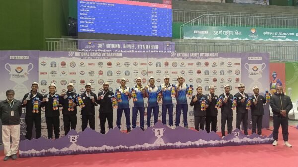देहरादून : उत्तराखंड में चल रहे 38वें राष्ट्रीय खेल के जिम्नास्टिक्स मुकाबलों के पहले दिन शानदार प्रदर्शन देखने को मिला। शनिवार, 8 फरवरी को पुरुषों की आर्टिस्टिक जिम्नास्टिक्स टीम फाइनल में सर्विसेज की टीम ने 215.25 के स्कोर के साथ पहला स्थान हासिल किया। उत्तर प्रदेश की टीम ने 212.30 अंक लेकर दूसरा स्थान पाया, जबकि हरियाणा की टीम 204.90 अंक के साथ तीसरे स्थान पर रही। एरोबिक जिम्नास्टिक्स में भी कई रोमांचक मुकाबले हुए, जिनमें विभिन्न टीमों ने अगले दौर के लिए क्वालीफाई किया।