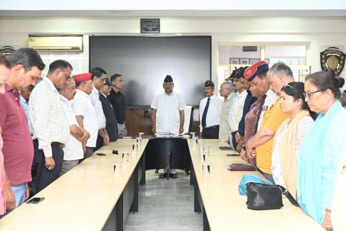 देहरादून : सैनिक कल्याण मंत्री गणेश जोशी ने बुधवार को कालीदास रोड़ स्थित सैनिक कल्याण निदेशालय में सैनिक कल्याण विभाग द्वारा जम्मू कश्मीर के कठुआ में हुए आतंकवादी हमले में वीरभूमि उत्तराखण्ड के पांच अमर शहीदों के श्रद्धांजलि कार्यक्रम में प्रतिभाग कर सैनिक कल्याण मंत्री गणेश जोशी ने अमर शहीदों को पुष्पचक्र अर्पित कर और दो मिनट का मौन रखकर भावपूर्ण श्रद्धासुमन अर्पित किया।
