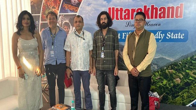 गोवा। 53 वें अन्तर्राष्ट्रीय फिल्म महोत्सव में उत्तराखंड पवेलियन का सोमवार को विशेष प्रमुख सचिव सूचना अभिनव कुमार द्वारा निरीक्षण किया गया। इस दौरान विशेष प्रमुख सचिव, सूचना से विभिन्न फ़िल्म निर्माता, निर्देशक, राइटर, लाइन प्रोड्यूसर आदि द्वारा चर्चा की गई। मनु रेवल ( चाय पानी ईटीसी फेम) निर्माता निर्देशक भारत और फ़्रांस से चर्चा करते हुए विशेष प्रमुख सचिव द्वारा उत्तराखंड में शूटिंग अनुमति, सब्सिडी और राज्य सरकार द्वारा दी जा रही सहायता के बारे में जानकारी दी गयी।