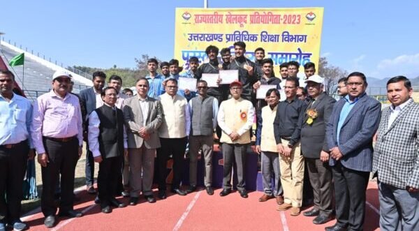 देहरादून : उत्तराखण्ड़ प्राविधिक शिक्षा विभाग द्वारा महाराणा प्रताप स्पोर्ट्स कालेज रायपुर देहरादून में आयोजित राज्य स्तरीय अंतर पॉलीटेक्निक खेलकूद एवं सांस्कृतिक प्रतियोगिताओं 2023 का समापन मुख्य अतिथि सचिव, तकनीकी शिक्षा, उत्तराखण्ड़ शासन रविनाथ रमन, आई.ए.एस. की गरिमामय उपस्थिति में हुआ। कार्यक्रम में सचिव तकनीकी शिक्षा रविनाथ रमन ने एनसीसी कैडेट परेड की सलामी ली तथा प्रतियोगिता में विजयी प्रतिभागियों को सम्मानित किया एवं छात्र-छात्राओं का उत्साहवर्धन किया। सचिव तकनीकी शिक्षा रविनाथ रमन ने छात्र-छात्राओं, अधिकारियों एवं कर्मचारियों को राज्य स्तरीय खेलकूद एवं सांस्कृतिक प्रतियोगिता के सफल आयोजन हेतु बधाई व शुभकामनाएं देते हुए कहा कि खेलकूद और सांस्कृतिक गतिविधियां भी शिक्षा का ही महत्वपूर्ण हिस्सा है। तत्पश्चात् झंडा अवतरण किया गया एवं प्रतियोगिता समापन की घोषणा की गयी।