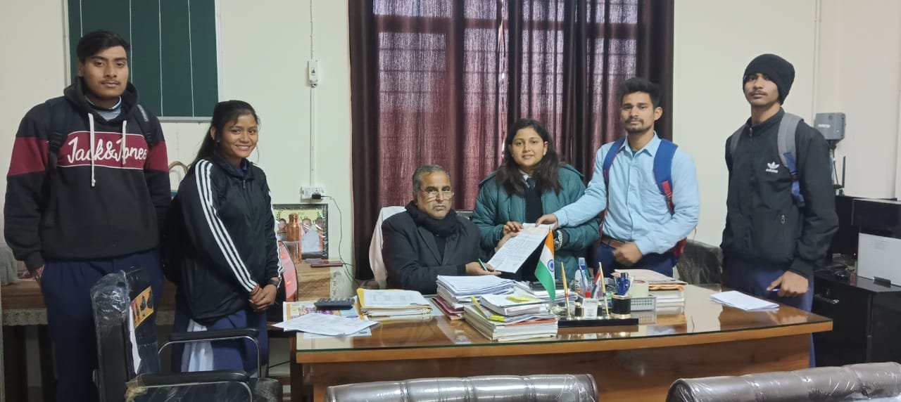 कोटद्वार । भाबर स्थित राजकीय महाविद्यालय की नव निर्वाचित छात्रसंघ अध्यक्ष अंशिका केष्टवाल ने छात्रों के लिए खेल सामग्री उपलब्ध कराने और महाविद्यालय में बाहरी लोगों के प्रवेश पर रोक लगाने की मांग की है। इस संबंध में महाविद्यालय के प्राचार्य को सौंपे ज्ञापन में उन्होंने कहा है कि खेल में रुचि रखने वाले छात्र-छात्राओं को पर्याप्त सुविधा न मिलने के कारण वे खेलों में अपनी प्रतिभा दिखाने से रह जाते हैं। वहीं महाविद्यालय में बाहरी लोगों का प्रवेश भी हो रहा है, इसलिए महाविद्यालय के मुख्य द्वार पर छात्र-छात्राओं के प्रवेश पत्र देखकर ही उन्हें प्रवेश दिया जाना चाहिए।