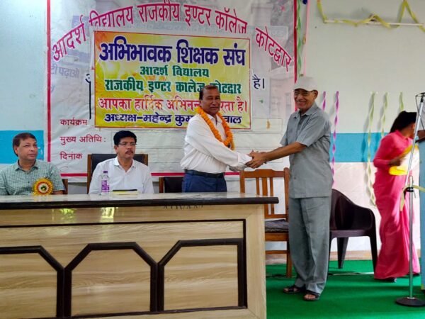 कोटद्वार । आदर्श विद्यालय राजकीय इंटर कॉलेज कोटद्वार में सोमवार को शिक्षक कर्मचारी सम्मान समारोह का आयोजन किय गया । यह सम्मान समारोह डॉक्टर सर्वपल्ली राधाकृष्णन की जयंती के उपलक्ष्य में मनाया जाता है । शिक्षक सम्मान में 52 शिक्षक, शिक्षिकाओं, कर्मचारियों को सम्मानित किया गया है । मुख्य अतिथि के रूप में बेस चिकित्सालय कोटद्वार के वरिष्ठ डॉक्टर नेत्र सर्जन दिनेश कुमार सिंह ने बताया कि यदि देश में कोई सम्मान के लायक व्यक्ति है तो वह अध्यापक ही । आईएएस एवं पीसीएस को शिक्षा भी अध्यापक ही देते हैं इसलिए अध्यापक ही सबसे पहले सम्मान का हकदार होता है । इस अवसर पर विद्यालय के संपूर्ण शिक्षक, शिक्षिकाएं एवं कर्मचारी के अलावा 6 पूर्व शिक्षकों को विशेष रूप से सम्मानित भी किया गया । जिसमें सादर सिंह रावत, चित्रमणि देवलियाल, बीना मित्तल, वीरेंद्र सिंह गोसाई, राज्यपाल से सम्मानित लल्लन कुमार, पूर्व प्रधानाचार्य जगमोहन सिंह रावत को अपने कार्यकाल में विद्यालय हित, छात्र हित अभिभावक के लिए अपने-अपने स्कूलों में बेहतरीन कार्य किया तथा वर्तमान में समाज में सक्रियता से अपना योगदान दे रहे हैं । इस अवसर पर कैप्टन पीएल खंतवाल, एपी डंगवाल, आरपी पंत, रिपुदमन सिंह बिष्ट, विजय महेश्वरी, प्रदीप अग्रवाल, विनोद नेगी, मनमोहन सिंह चौहान, रईस अहमद सलमानी, मंजू अग्रवाल, नरेंद्र कुमार अग्रवाल सहित छात्र-छात्राएं मौजूद रहे ।