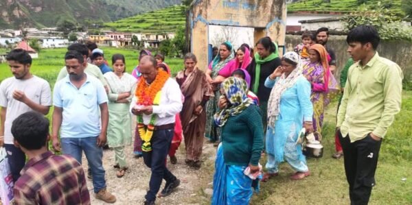 जोशीमठ(चमोली)। सीमांत जनपद चमोली के जोशीमठ ब्लाॅक के दूरस्थ क्षेत्र में स्थित विद्यालय राजकीय इंटर कॉलेज गणाई में कार्यरत शिक्षक रमेश चन्द्र आर्य, (एलटी-अंग्रेजी) का स्थानांतरण अन्यत्र विद्यालय में होने पर ग्रामीणों नें विदाई दी। शिक्षक रमेश चन्द्र आर्य का दुर्गम में 18 साल की सेवा के बाद स्थानांतरण हुआ। अंग्रेजी विषय में उनका रिजल्ट विगत 18 सालों से 100 फीसदी रहा। उन्होंने अंग्रेजी जैसे कठिन विषय को रूचिकर बनाया और छात्र-छात्राओं को बेहद आसन बनाया। रमेश चन्द्र आर्य जैसे शिक्षकों की वजह से लोगों का सरकारी विद्यालय के प्रति भरोसा और विश्वास बढा है। उन्होने दुर्गम स्थल में तैनाती को मिशन मोड में लिया और अपनें कर्तव्यों का भली भांति निर्वहन करके दुर्गम की परिभाषा ही बदल डाली। शिक्षक की विदाई समारोह में हर कोई भावुक था। क्या बच्चे क्या बुजुर्ग, सबकी आंखो में आंसुओं की अविरल धारा बह रही थी। सबको शिक्षक के तबादला होंने पर यहां से चले जाने का दुख है। शिक्षक रमेश चन्द्र आर्य की जो विदाई हुई है वैसी विदाई हर कोई शिक्षक अपने लिए चाहेगा। ग्रामीणों और स्कूल के छात्र-छात्राओं नें अपने शिक्षक को फूल मालाओं और ढोल दमाऊं, बैंड-बाजे के संग कभी न भूलने वाली विदाई दी।