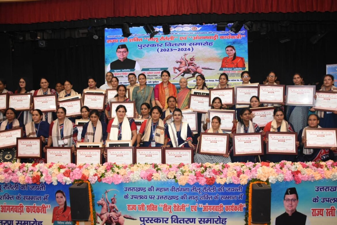 - महिला सशक्तिकरण एवं बाल विकास मंत्री रेखा आर्या ने विभिन्न क्षेत्रों में उत्कृष्ट कार्य करने वाली 13 महिलाओं व युवतियों को “राज्य स्त्री शक्ति तीलू रौतेली” जबकि 32 आंगनबाड़ी कार्यकर्ताओं को आंगनबाड़ी कार्यकत्री पुरस्कार से किया गया सम्मानित
