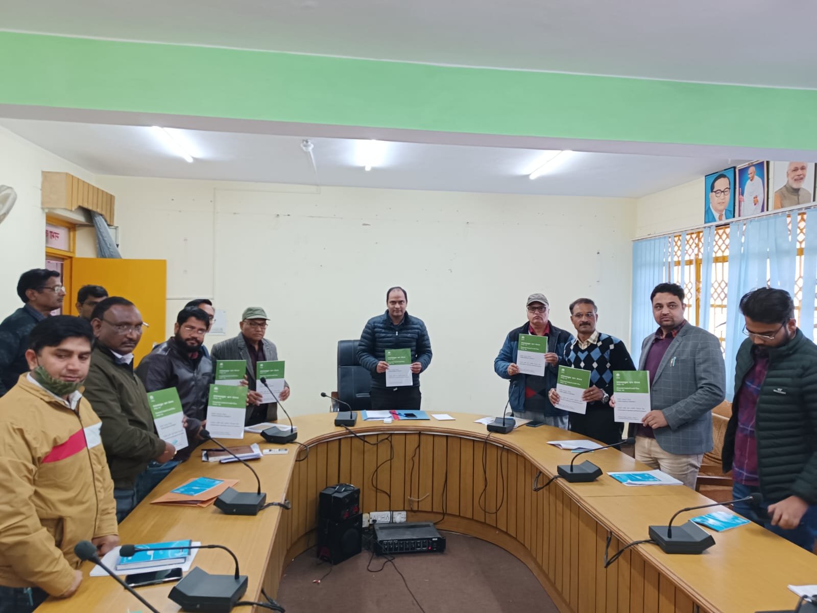 टिहरी : मुख्य विकास अधिकारी टिहरी गढ़वाल मनीष कुमार द्वारा आज राज्य स्तरीय बैंकर्स कमेटी की बैठक ली गयी। मुख्य विकास अधिकारी द्वारा उपस्थित सभी बैंक अधिकारियों एवं विभागीय अधिकारियों को आपसी संबंध स्थापित करते हुए निर्धारित लक्ष्यों के सापेक्ष प्राप्त आवेदन पत्रों को समय से निर्धारित करते हुए शत-प्रतिशत लक्ष्य पूर्ण करने के निर्देश दिए गए। बैठक के दौरान नाबार्ड के सहयोग से संभाव्यता युक्त ऋण योजना वर्ष 2023-24 पुस्तक का विमोचन किया गया। मुख्य विकास अधिकारी द्वारा जिला स्तरीय दंगल कमेटी की समीक्षा बैठक ली गई।