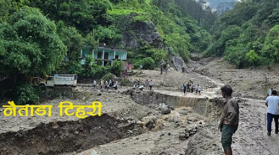 टिहरी जिले के भिलंगना ब्लॉक के नौताड़ तोक में बादल फटने से एक ही परिवार के तीन लोगों की मौत हो गई। नौताड़ तोक में एक होटल बह गया। जिसमें होटल स्वामी भानु प्रसाद (50), उनकी पत्नी नीलम देवी (45) और बेटा वपिन (28) लापता थे। रेस्क्यू अभियान के दौरान भानु और उनकी पत्नी नीलम का शव घटनास्थल से 100 मीटर दूरी पर बरामद कर लिया गया है। लापता बेटा विपिन घायल अवस्था में मिला है।