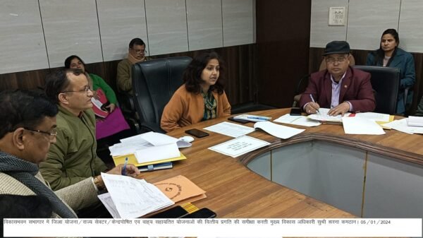 देहरादून : मुख्य विकास अधिकारी झरना कमठान की अध्यक्षता में विकासनभवन सभागार में जिला योजना/राज्य सेक्टर/केन्द्रपोषित एवं वाह्य सहायतित योजनाओं की वित्तीय प्रगति की समीक्षा की गई। बीस सूत्रीय कार्यक्रम में माह अपै्रल से माह अक्टूबर 2023 तक 91.92 प्रतिशत् प्रगति के साथ राज्य में प्रथम स्थान पर रहने पर मुख्य विकास अधिकारी ने सम्बन्धित विभागों की प्रशंसा करते हुए प्रथम स्थान पर बने रहने की दिशा में कार्य करने के निर्देश दिए। तथा 30 सूत्रीय कार्यक्रम में राज्य में 2 स्थान पर रहने पर प्रशंसा करते हुए प्रथम स्थान जाने हेतु प्रयास करने के निर्देश दिए। मुख्य विकास अधिकारी ने योजनाओं शत् प्रतिशत् रहने वाले विभागों की प्रशंसा करते हुए अन्य विभागों को भी प्रगति को शतप्रतिशत बढाने के निर्देश दिए।