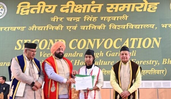 कुलाधिपति एवं राज्यपाल लेफ्टिनेंट जनरल गुरमीत सिंह (से.नि.) ने पेशावर कांड के नायक वीर चंद्र सिंह गढ़वाली को नमन करते हुए सभी को दीक्षांत समारोह की बधाई दी। उन्होंने कहा कि उत्तराखंड देवों और वीरों की भूमि है, यहां लोगों के हृदय में वीरता का जज्बा कूट कूट कर भरा हुआ है। यहां के स्थानीय जैविक उत्पादों की दिव्यता और गुणवत्ता के चलते देश विदेश में इनकी बहुत मांग है और इसी के चलते 78 देशों ने मिलेट्स को मान्यता दी है तथा इसे श्री अन्न कहा गया है। उन्होंने उपाधि और मेडल प्राप्त कर रहे छात्र-छात्राओं से कहा कि अपनी योग्यता को पहचाने और सकारात्मक सोच तथा ढृढ़ संकल्प के साथ आगे बढ़कर अपनी उड़ान को सफल बनाएं। उन्होंने डिग्रीधारकों से कहा कि अपने कौशल को बहुत ऊपर ले जाने में आपको कई चुनौतियों का सामना करना पड़ सकता है, उनका सामना धैर्य एवं लगन के साथ करें। कृषि और उद्यानीकरण के क्षेत्र में रिसर्च और शोध करें, इसमें उत्तराखंड का भविष्य छुपा है।