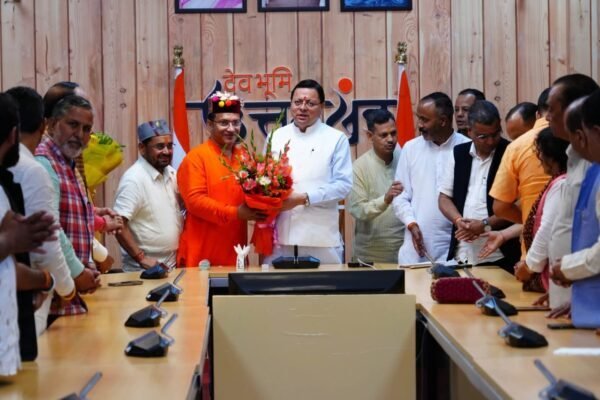 देहरादून : मुख्यमंत्री पुष्कर सिंह धामी से सोमवार को मुख्यमंत्री आवास में गंगोत्री क्षेत्र से विधायक सुरेश सिंह चौहान तथा पुरोला क्षेत्र से विधायक दुर्गेश्वर लाल के नेतृत्व में उत्तरकाशी जिले से त्रिस्तरीय पंचायत चुनावों में जीत दर्ज करने वाले नवनिर्वाचित जिला पंचायत सदस्यों ने भेंट की । मुख्यमंत्री पुष्कर सिंह धामी ने सभी विजयी जनप्रतिनिधियों को बधाई एवं जनसेवा के नवीन दायित्वों के सफल निर्वहन हेतु शुभकामनाएं दी।