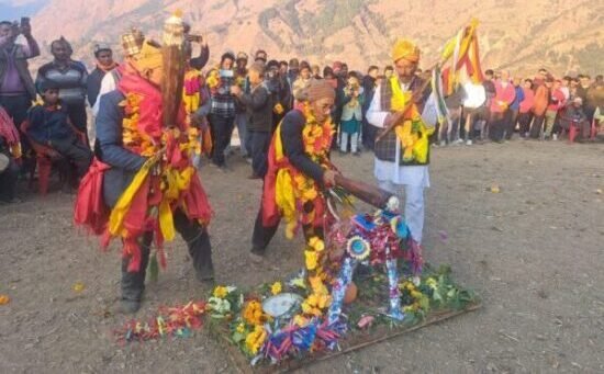 गोपेश्वर (चमोली)। चमोली जिले के दशोली ब्लॉक के किरूली गांव में आयोजित पांडव नृत्य में शुक्रवार को गेंडा वध का आयोजन किया गया। जिसमें क्षेत्र के दूर दराज के ग्रामीणों के साथ ही गांवों से बाहर निवासरत ग्रामीणों के साथ ही ध्याणियां (वो बेटियां जिनकी शादी हो चुकी है) भी अपने मायके आयी हुई है।