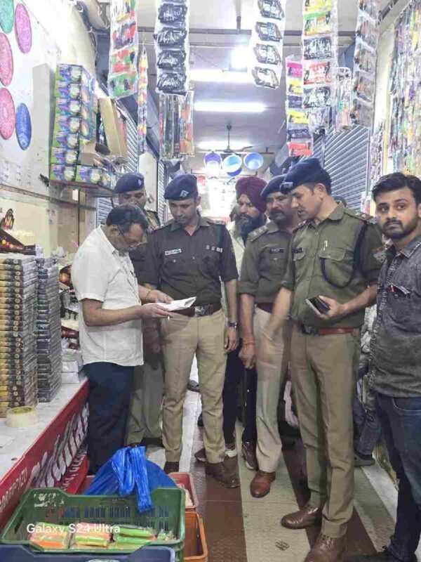 देहरादून: आगामी दीपावली के पर्व के दृष्टिगत एसएसपी देहरादून द्वारा सभी थाना प्रभारियों को अपने-अपने थाना क्षेत्र में अवैध रूप से संचालित पटाखों के गोदाम व पटाखे की दुकानों के विरुद्ध प्रभावी कार्रवाई करने के निर्देश दिए गए हैं, इसी क्रम में आज दिनाँक 24/10/2024 को कोतवाली नगर तथा फायर सर्विस की संयुक्त टीम द्वारा धामावाला बाजार, दर्शनी गेट, मन्नू गंज, हनुमान चौक तथा पलटन बाजार में अवैध रूप से पटाखे विक्रय करने वाले दुकानदारों के विरुद्ध चेकिंग अभियान चलाया गया, अभियान के दौरान पुलिस टीम द्वारा कार्यवाही करते हुए 07 दुकानदारों का पुलिस एक्ट में चालान कर ₹70000 का जुर्माना लगाया गया, साथ ही बिना लाइसेंस के चल रही 08 दुकानों को बंद कराया गया, जिसकी रिपोर्ट संबंधित को प्रेषित की जा रही है। साथ ही सभी दुकानदारों को हिदायत दी गई की लाइसेंस प्राप्त होने पर ही नियमानुसार पटाखे विक्रय किए जाएं ।