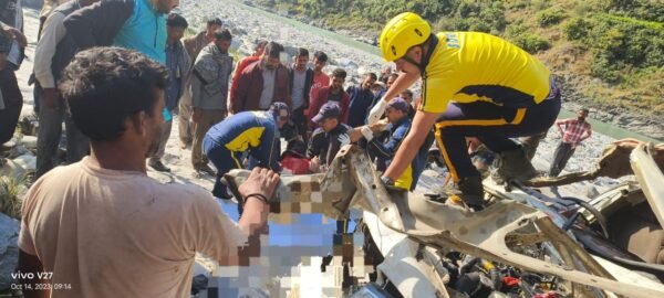 चकराता : जनपद देहरादून के चकराता क्षेत्रान्तर्गत मीनस के पास दुखद हादसा, दुर्घटनाग्रस्त वाहन से SDRF ने बरामद किए 03 शव। आज 14 अक्टूबर 2023 को तहसीलदार चकराता द्वारा SDRF को सूचना दी गयी कि मीनस के पास पाटण नामक स्थान पर एक बोलेरो कैम्पर दुर्घटनाग्रस्त हो गया है। उक्त सूचना पर पोस्ट त्यूणी में व्यवस्थापित SDRF रेस्क्यू टीम HC सतेंद्र रावत के नेतृत्व में मय आवश्यक रेस्क्यू उपकरणों के तत्काल घटनास्थल हेतु रवाना हुई। उक्त घटनास्थल पर एक बोलेरो कैंपर (HP 63 C 5039) जिसमें 03 लोग सवार थे जो नेवल टिकरी, तहसील- चौपाल, हिमाचल प्रदेश से विकासनगर की ओर आ रहे थे। विकासनगर की ओर आते समय मीनस के पास वाहन अनियंत्रित होने से मुख्य मार्ग से लगभग 200 मीटर नीचे दुर्घटनाग्रस्त हो गया जिसमें तीनों सवारों की घटनास्थल पर ही दर्दनाक मौत हो गयी। SDRF टीम द्वारा घटनास्थल पर पहुँचकर त्वरित कार्यवाही करते हुए दुर्घटनाग्रस्त वाहन तक पहुँच बनाकर वाहन में फंसे तीनों शवों को बाहर निकाला जिसके पश्चात कड़ी मशक्कत करते हुए वैकल्पिक मार्ग से होते हुए मुख्य मार्ग तक पहुँचाकर जिला पुलिस के सुपर्द किया गया।
