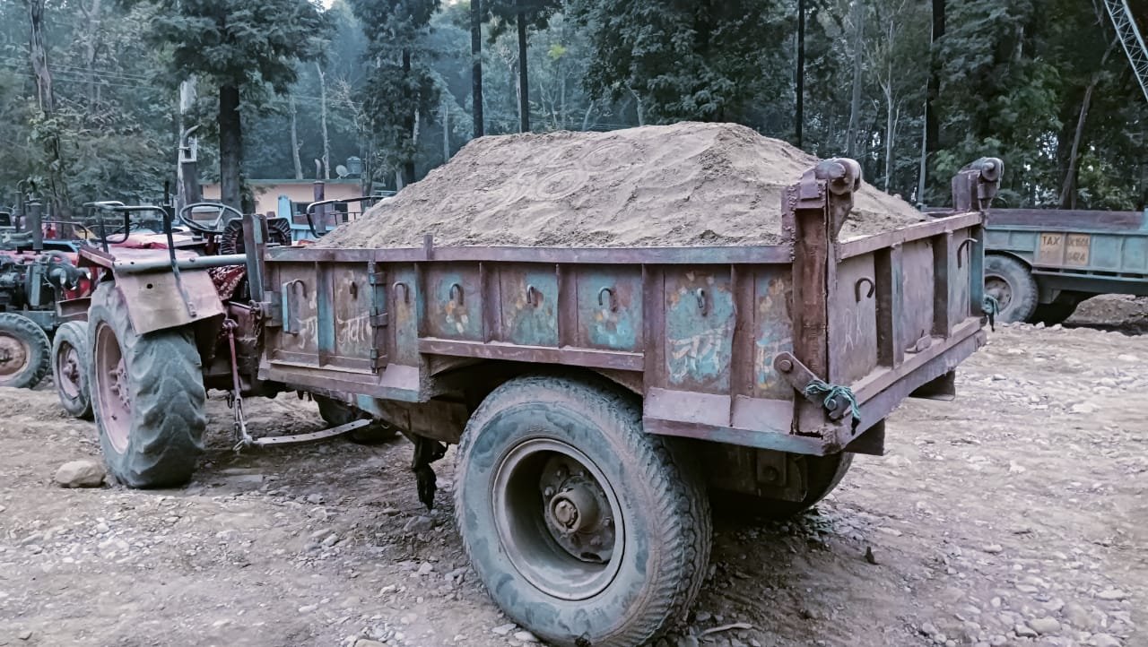 कोटद्वार। वन विभाग लगातार अवैध खनन पर कार्रवाई कर रहा है किंतु इसके बावजूद भी अवैध खनन रुकने का नाम नहीं ले रहा है । बुधवार को गाडीघाट क्षेत्र की खो नदी में खनन माफिया खुलेआम अवैध खनन से लदी ट्रैक्टर ट्रॉलियों को लेकर आ रहे थे तो भी वन विभाग की टीम मौके पर पहुंच गई और दोनों ट्रैक्टरों को रेंज कार्यालय पर लाकर खड़ा कर दिया गया । कोटद्वार रेंज के रेंजर अजय ध्यानी ने बताया कि बुधवार सुबह छः बजे दो ट्रेक्टर ट्राली खो नदी से अवैध खनन भरकर आ रही थी तभी हम लोग मौके पर पहुंचे। दोनों ट्रैक्टर ट्रॉलियों को कोटद्वार रेंज में लाकर सीज कर दिया गया है।