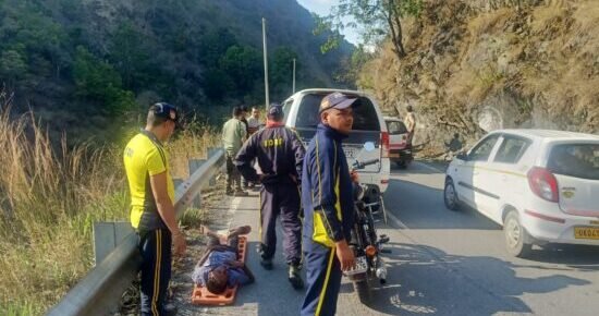 नैनीताल : जनपद नैनीताल-खैरना क्षेत्रान्तर्गत रति घाट में दो वाहन टकराकर हुए दुर्घटनाग्रस्त, SDRF ने किया रेस्क्यू। आज 02 अप्रैल 2023 को पुलिस चौकी खैरना द्वारा SDRF को सूचित किया गया कि रति घाट क्षेत्र में रामगढ़ मंदिर के पास एक कार व एक महिंद्रा यूटिलिटी आपस में टकराकर दुर्घटनाग्रस्त हो गये है। उक्त सूचना पर पोस्ट खैरना से SI राजेश जोशी के हमराह रेस्क्यू टीम तत्काल मोके के लिए रवाना हुई। SDRF टीम द्वारा घटनास्थल पर पहुँचकर देखा गया कि एक महिंद्रा यूटिलिटी वाहन (UK02 TA 1831) जो 09 यात्रियों को लेकर कपकोट से हल्द्वानी जा रही थी जिसे एक टाटा स्टोर्म द्वारा टक्कर मार दी गई। SDRF टीम द्वारा टाटा स्टोर्म सवार घायल व्यक्ति नरेंद्र सिंह s/o धर्मवीर सिंह जो मेरठ से अल्मोड़ा जा रहे थे को खैरना हॉस्पिटल भेजा गया एवं यूटिलिटी में सवार घायल रवीना आर्य उम्र 20 वर्ष व बसंती देवी उम्र 22 वर्ष जो कि कपकोट निवासी है ,को भी हॉस्पिटल भेजा गया।