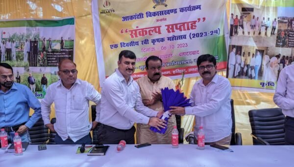 हरिद्वार : आकांक्षी विकास खंड कार्यक्रम अन्तर्गत संकल्प सप्ताह में विकास खंड बहादराबाद में रबी कृषक महोत्सव का आयोजन कृषि विभाग द्वारा किया गया | जिसमें कृषि विभाग सहित उद्यान, कृषि विज्ञान केंद्र धनौरी,पशुपालन, रेशम, मत्स्य, बैंक, सहकारिता, इफको, फसल बीमा के स्टाल लगाकर कृषकों को अपने अपने विभाग द्वारा संचालित योजनाओं की जानकारी दी गई| महोत्सव में विकास खंड बहादराबाद सहित जनपद के समस्त विकासखंडो से आए कृषकों को रबी से संबंधित फसलों की जानकारी देते हुए कृषि वैज्ञानिक डॉ. दीप्ति द्वारा गेहूं, मंसूर, सरसो एवं गन्ना फसल के किट प्रबंधन , रोग प्रबंधन, खरपतवार प्रबंधन, शष्य क्रियाओं एवं पोषक तत्व प्रबंधन के बारे में विस्तार से बताते हुए जैविक एवं प्राकृतिक खेती पर जोर दिया | इफको के क्षेत्रीय प्रबंधक डा. रामभजन ने महोत्सव में कृषकों को जानकारी देते हुए फसलों के पोषक तत्वों के प्रबंधन एवं नैनो यूरिया तथा नैनो डी ए पी के प्रयोग विधि बताते हुए अधिक से अधिक प्रयोग करने की सलाह दी गई |