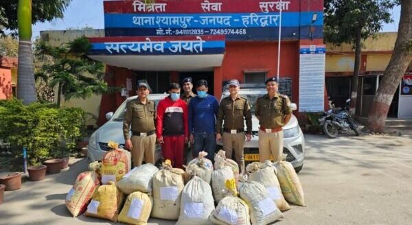 हरिद्वार : मुख्यमंत्री उत्तराखंड के “ड्रग्स फ्री देवभूमि मिशन 2025” अभियान को सार्थक बनाने हेतु एसएसपी हरिद्वार अजय सिंह द्वारा दिए गए कड़े दिशा निर्देशों के क्रम हरिद्वार पुलिस को बड़ी सफलता हाथ लगी। CO ऑपरेशन निहारिका सेमवाल के नेतृत्व में गठित पुलिस टीम द्वारा श्यामपुर क्षेत्रांतर्गत से बांस बगड़ घाट, चमोली निवासी दिनेश व देवेंद्र को 02 अलग अलग वाहनों से भारी मात्रा में अवैध गांजे (121 kg से ज्यादा) की तस्करी करते हुए दबोचा गया। पूछताछ में पता चला कि अभियुक्तों द्वारा गांजा चमोली से लाना बताया और उक्त माल डोईवाला निवासी राजेंद्र का होना बताया गया।