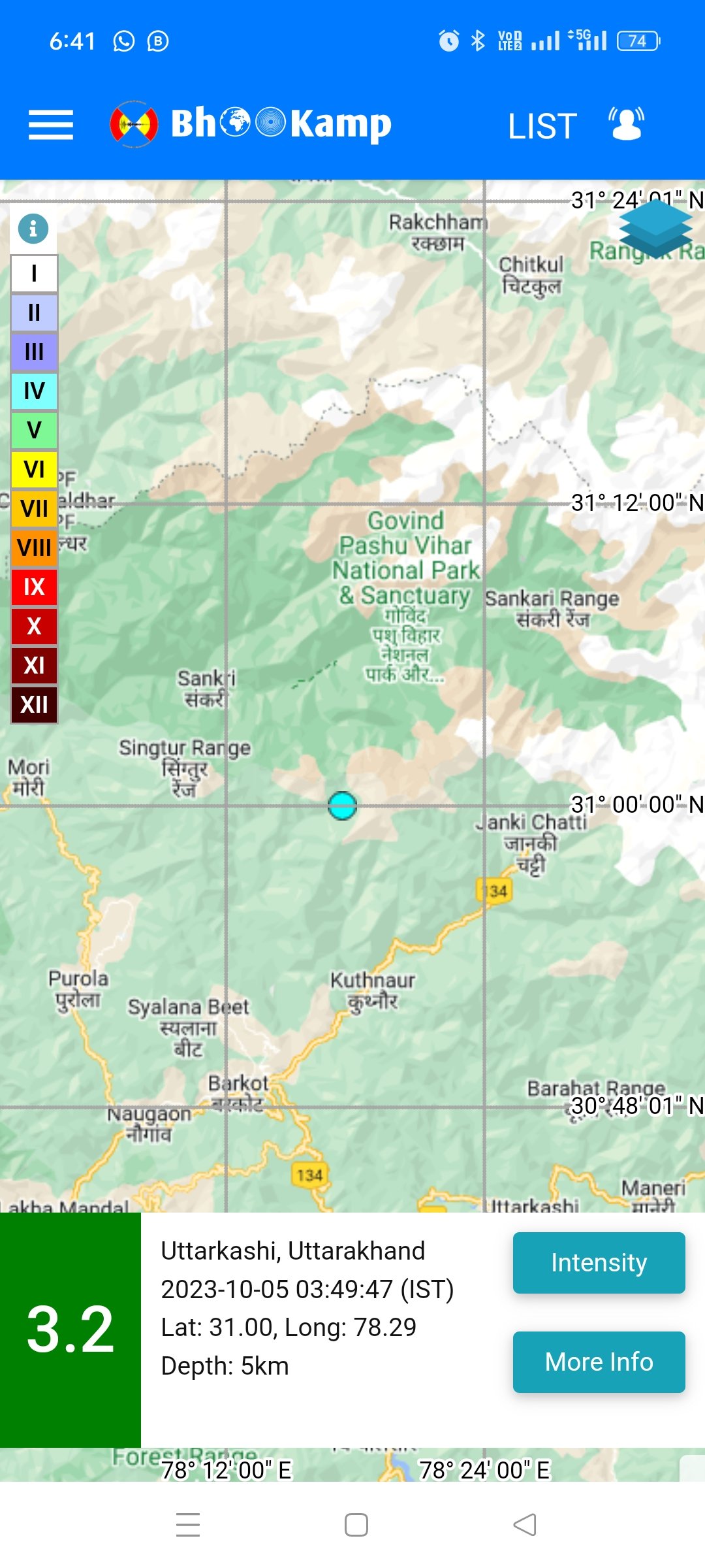 उत्तरकाशी : दो दिन पहले ही भूकंप के झटके महसूस किए गए थे। अब एक बार फिर भूकंप के झटकों ने लोगों को दहशत में डाल दिया। लगातार आ रहे भूकंप के झटके बड़े खतरे की ओर इशारा कर रहे हैं, जिसको लेकर वैज्ञानिक कई बार चेतावनी भी जारी कर चुके हैं। आज सुबह 3 बजकर 49 मिनट पर भूकंप के झटके महसूस किए गए, जिसकी तीव्रता 3.2 माफी गई है। भूकंप का केंद्र उत्तरकाशी जिले में था, जिसकी गहराई धरती की भीतर 5 किलोमीटर बताई जा रही है। हालांकि नुकसान की कहीं से फिलहाल कोई खबर सामने नहीं आई है।
