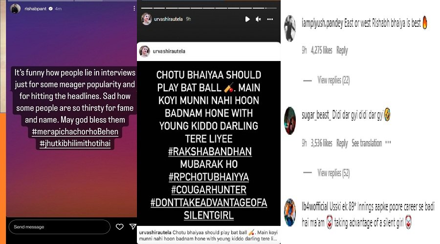 पंत और उर्वशी के मामले ने तूल पकड़ा था। सोशल मीडिया पर एक वीडियो वायरल हुआ था, जिसमें उर्वशी किसी इंटरव्यू में बैठी थीं। इंटरव्यू में उर्वशी ने किसी मिस्टर RP के नाम का जिक्र किया था और उसके साथ उनका रिलेशिनशिप टूटने की पूरी कहानी बताई है। इसके बाद सोशल मीडिया पर दावा किया गया था कि मिस्टर RP और कोई नहीं बल्कि पंत ही हैं। इसके बाद सोशल मीडिया पर ही यह भी दावा किया गया था पंत ने इंस्टाग्राम पर स्टोरी लगाकर रौतेला को जवाब भी दिया था। हालांकि, कुछ मिनट बाद उन्होंने अपनी स्टोरी डिलीट कर ली थी। अब उर्वशी के पोस्ट पर लोग कमेंट कर दोनों का मजाक भी उड़ा रहे हैं।