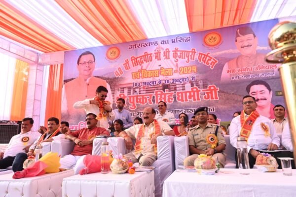 प्रदेश के वन, तकनीकी शिक्षा, भाषा एवं निर्वाचन मंत्री सुबोध उनियाल ने गुरुवार को रामलीला मैदान नरेंद्रनगर टिहरी गढ़वाल में मुख्य अतिथि के रूप में 48वें श्री कुंजापुरी पर्यटन एवं विकास मेले का ध्वजारोहण कर मेले के शुभारम्भ की घोषणा की। इसके साथ ही मुख्य अतिथि द्वारा रिबन काटकर विकास प्रर्दशनी का उद्घाटन, विभिन्न विभागों द्वारा स्थापित स्टालों का निरीक्षण तथा अमर शहीदों की मूर्तियों एवं स्वतंत्र संग्राम शहीद स्मारक पर मल्यार्पण किया। कैबिनेट मंत्री ने दीप प्रज्जवलित कर सांस्कृतिक संध्या कार्यक्रम का शुभारम्भ किया तथा सभी को मेले की बधाई एवं शुभकामनाएं देते हुए प्रसिद्ध सिद्धपीठ मां कुंजापुरी से प्रदेश की सुख, समृद्धि एवं खुशहाली की कामना की। उनके द्वारा प्रातः मां कुंजापुरी मंदिर में विधिवत् पूजन एवं हवन किया गया।