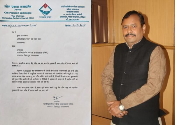 हरिद्वार : उपाध्यक्ष पारिस्थितिकीय पर्यटक सलाहाकार परिषद ओम प्रकाश जमदग्नि ने बताया कि 05 अगस्त 2025 को उत्तराखण्ड के धराली क्षेत्र जिला उत्तरकाशी एवं पाबौ और थलीसैण जिला पौडी में प्राकृतिक आपदा से जान-माल को अत्यधिक छति पहुंची है। यह घटना अत्यन्त पीडा दायक दुःखद और व्यथित करने वाली है, जिसमें कि प्रदेश मुख्यमंत्री पुष्कर सिंह धामी के मार्गदर्शन व निर्देशो से आपदा के समय से ही त्वरित गति से राहत व बचाव कार्यों को लगातार किये जा रहे है। उन्होंने आपदाग्रस्त क्षेत्रो में राहत एवं बचाव कार्यों हेतु अपना तीन माह का मानदेय मुख्यमंत्री राहत कोष मे प्रदान करने हेतु मुख्य वन संरक्षक पारिस्थितिकीय पर्यटन को पत्र लिखा है।