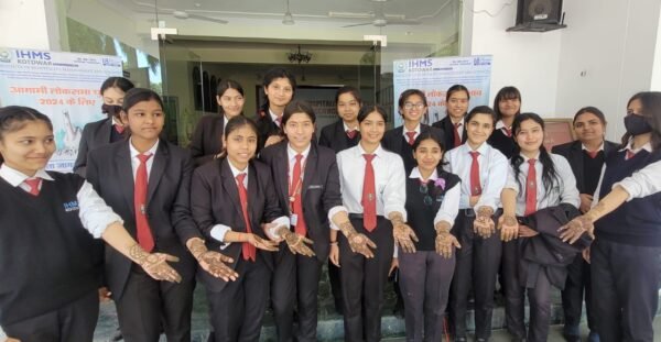 कोटद्वार। इंस्टीट्यूट ऑफ हास्पीटेलिटी मैनजमैंट एंड साइंसेज में लोकसभा चुनाव-2024 के तहत रंगोली, मेहंदी और नाटक प्रतियोगिता का आयोजन किया गया। जिसमें संस्थान के छात्र-छात्राओं ने अपनी प्रतिभा के माध्यम से शतप्रतिशत मतदान का संदेश दिया ।