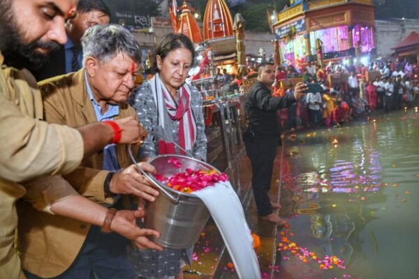 हरिद्वार : नीति आयोग के उपाध्यक्ष सुमन बेरी ने हरकी पौड़ी पहुंचकर माँ गंगा आरती में प्रतिभाग किया तथा माँ गंगा का दुग्धभिषेक किया। उन्होंने माँ गंगा से देश की खुशहाली और समृद्धि के लिए प्रार्थना की। नीति आयोग के उपाध्यक्ष सुमन बेरी के हरकी पौड़ी पहुँचने पर श्री गंगा सभा के पदाधिकारी महामंत्री तन्मय वशिष्ठ ने उनका स्वागत किया और गंगाजली देकर व अंग वस्त्र उड़ाकर स्वागत किया और गंगाजली भेट की। गंगासभा के सभापति तन्मय वशिष्ठ, स्वागत अध्यक्ष सिद्धार्थ चक्रपाणि आदि उपस्थित थे।