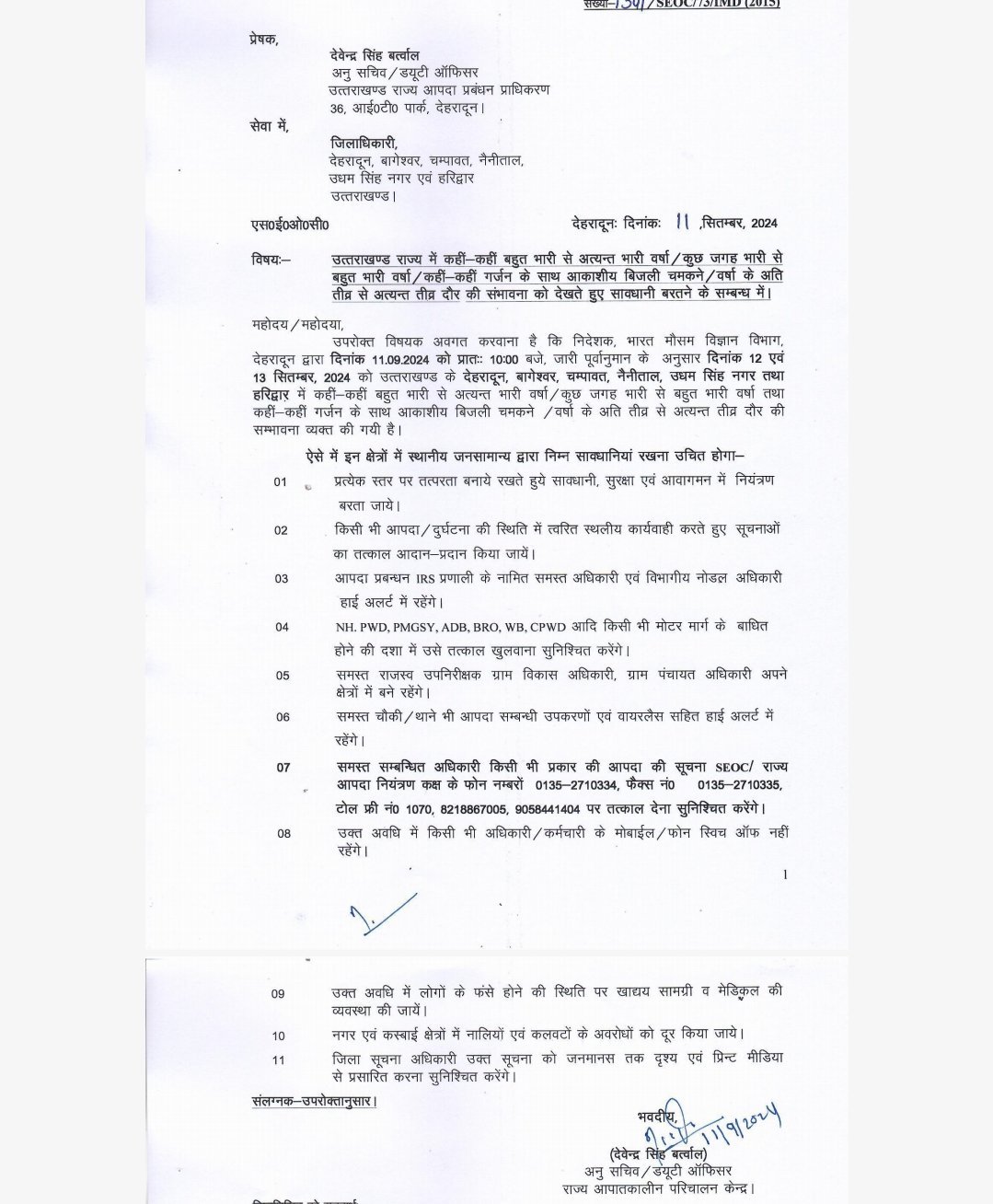 - आपदा प्रबन्धन IRS प्रणाली के नामित समस्त अधिकारी एवं विभागीय नोडल अधिकारी हाई अलर्ट में रहेंगे।
